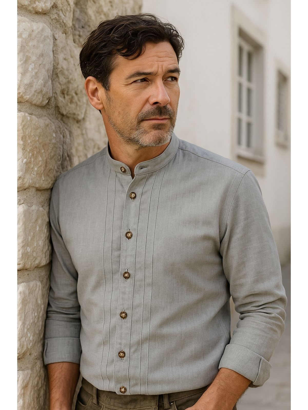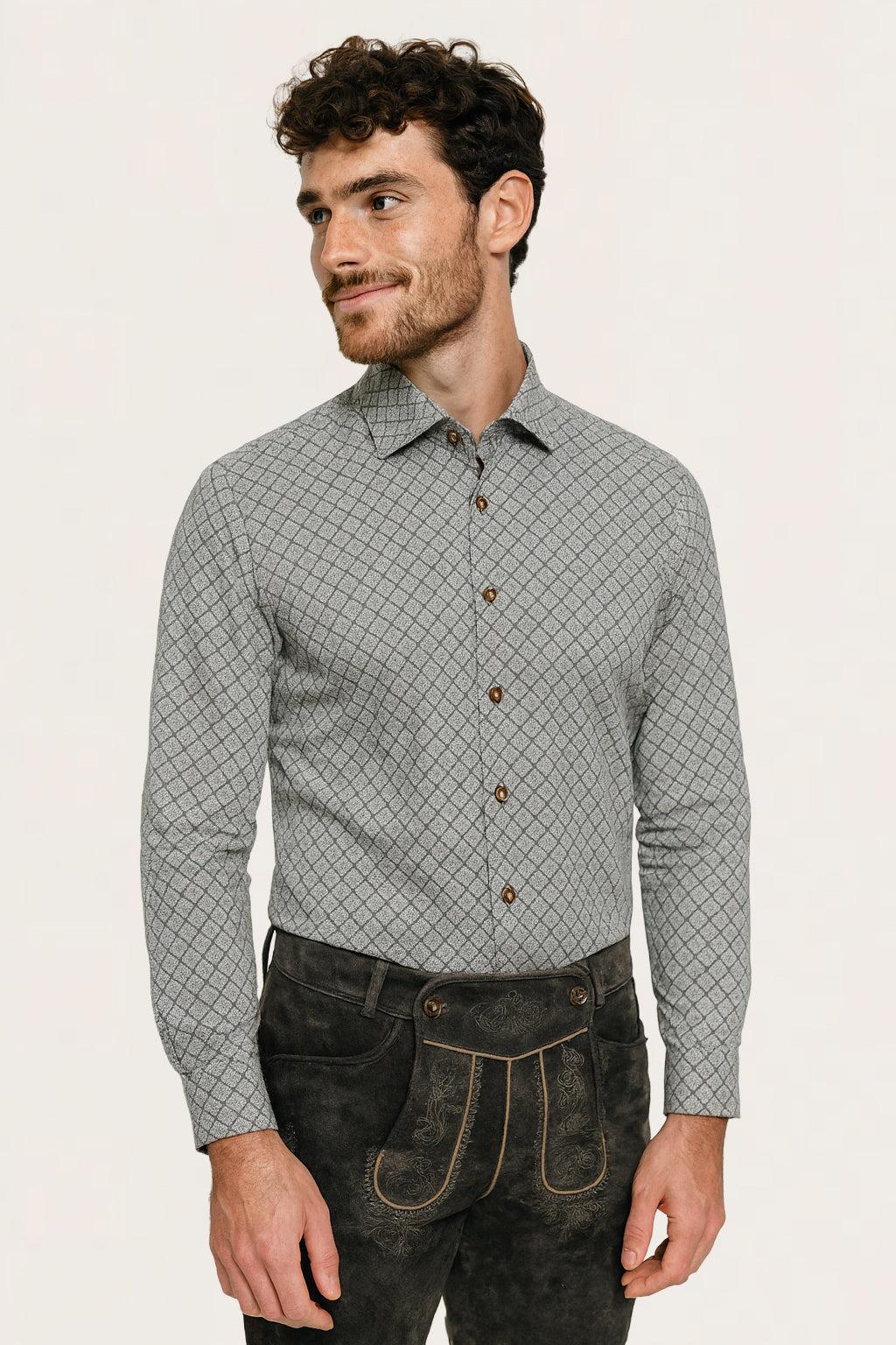 Fein gemusterte Bluse aus reiner Baumwolle mit elegantem Kelchkragen. Das dezente Allover-Muster in sanften Farbtönen verleiht der Bluse eine moderne, leichte Ausstrahlung. Durch den schmalen Steh-Kelchkragen entsteht ein klarer, femininer Look, der sowohl klassisch als auch zeitgemäß wirkt.